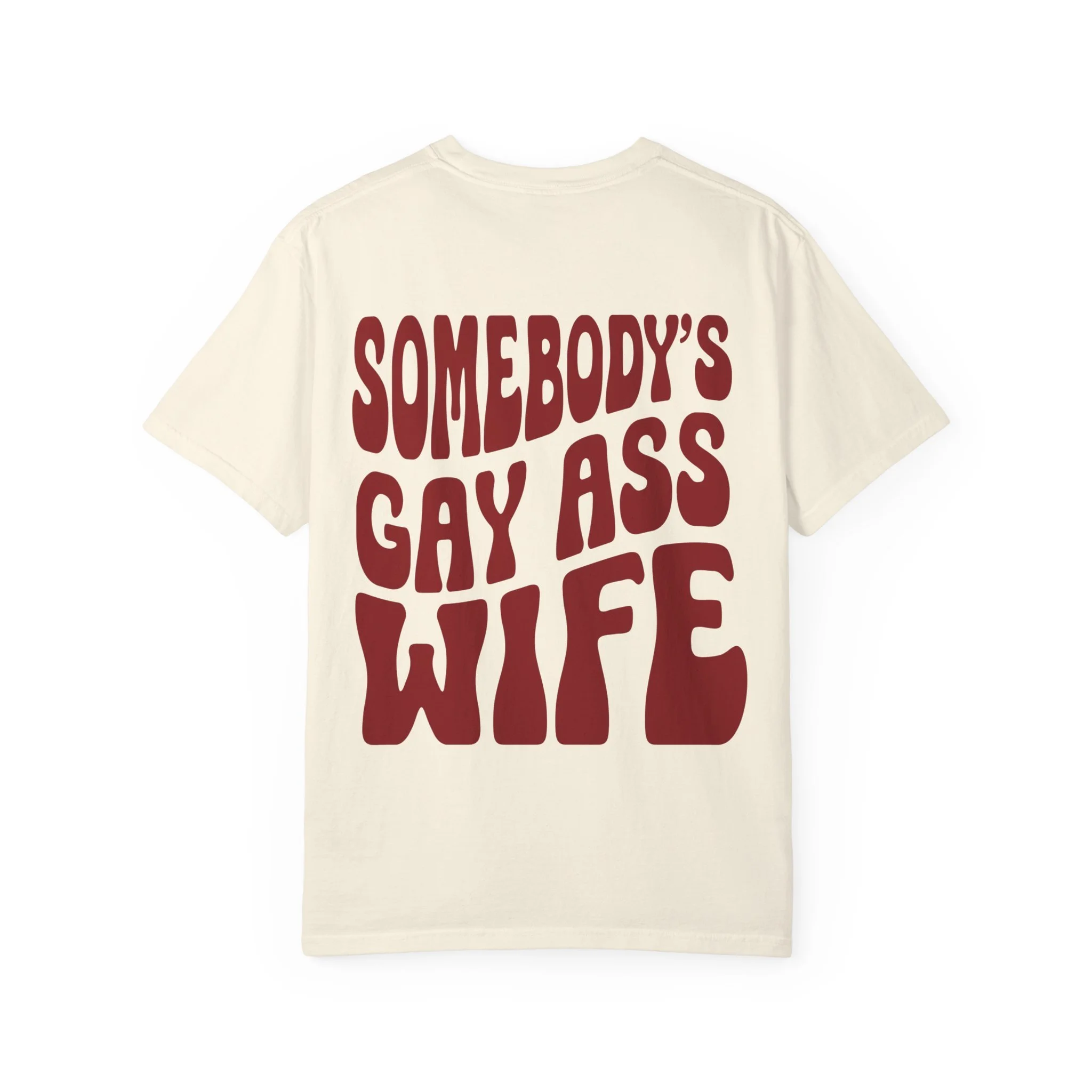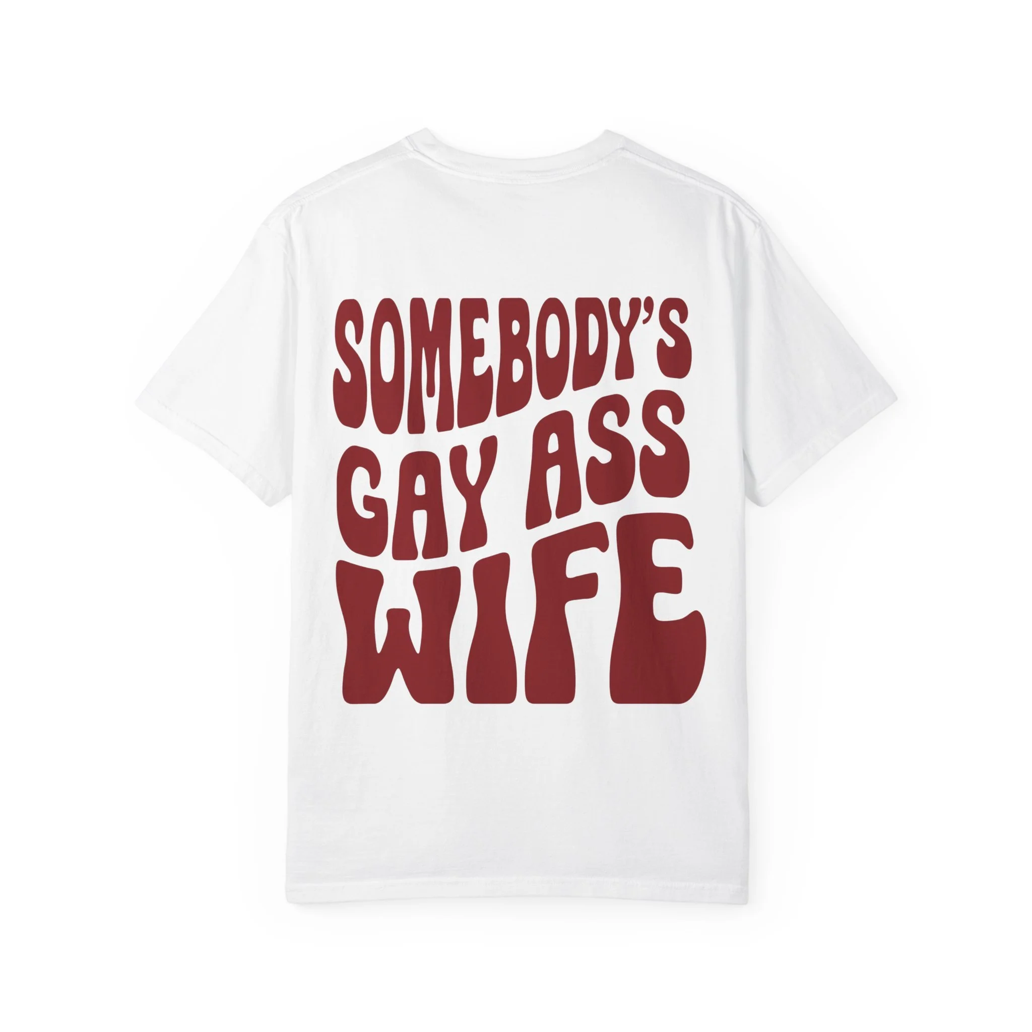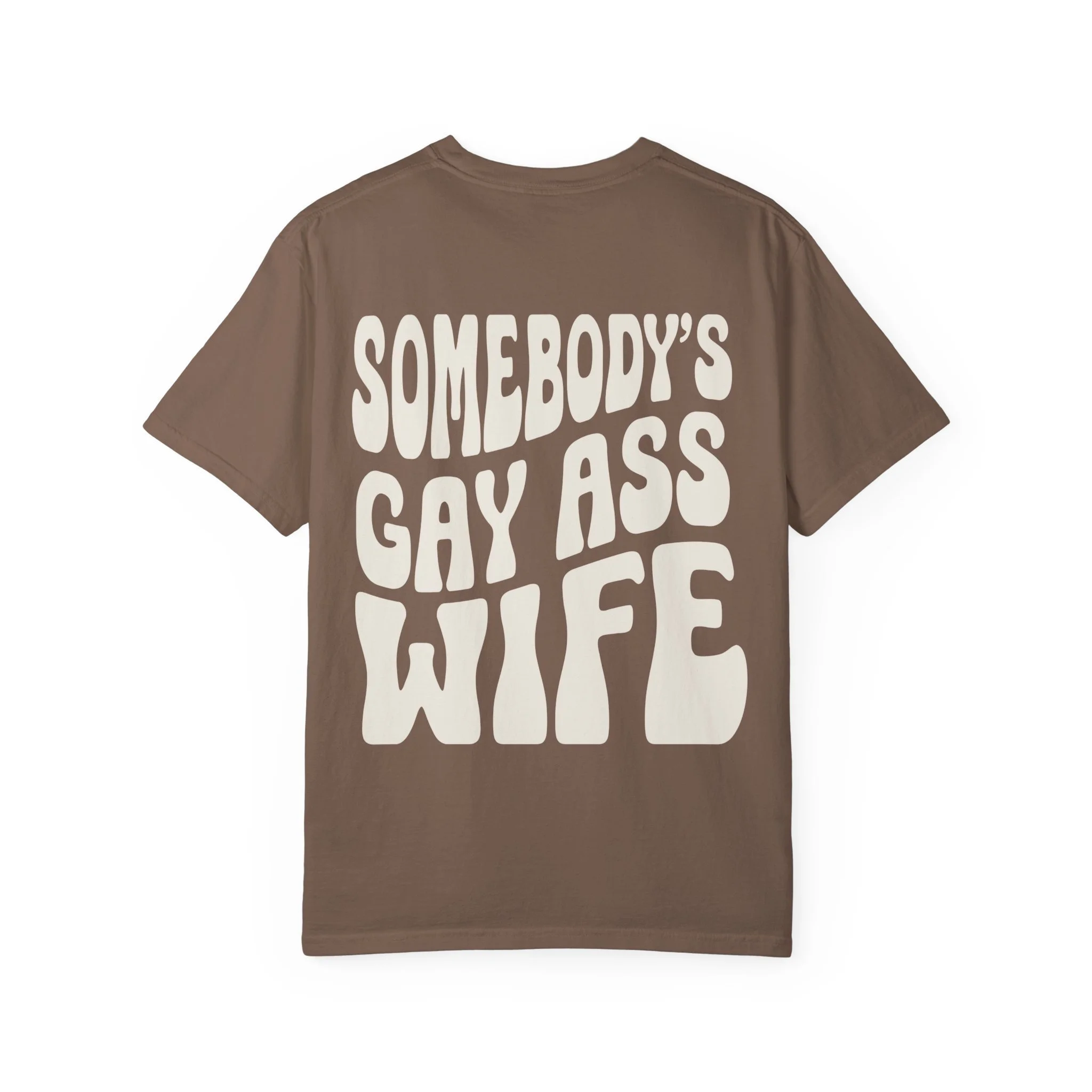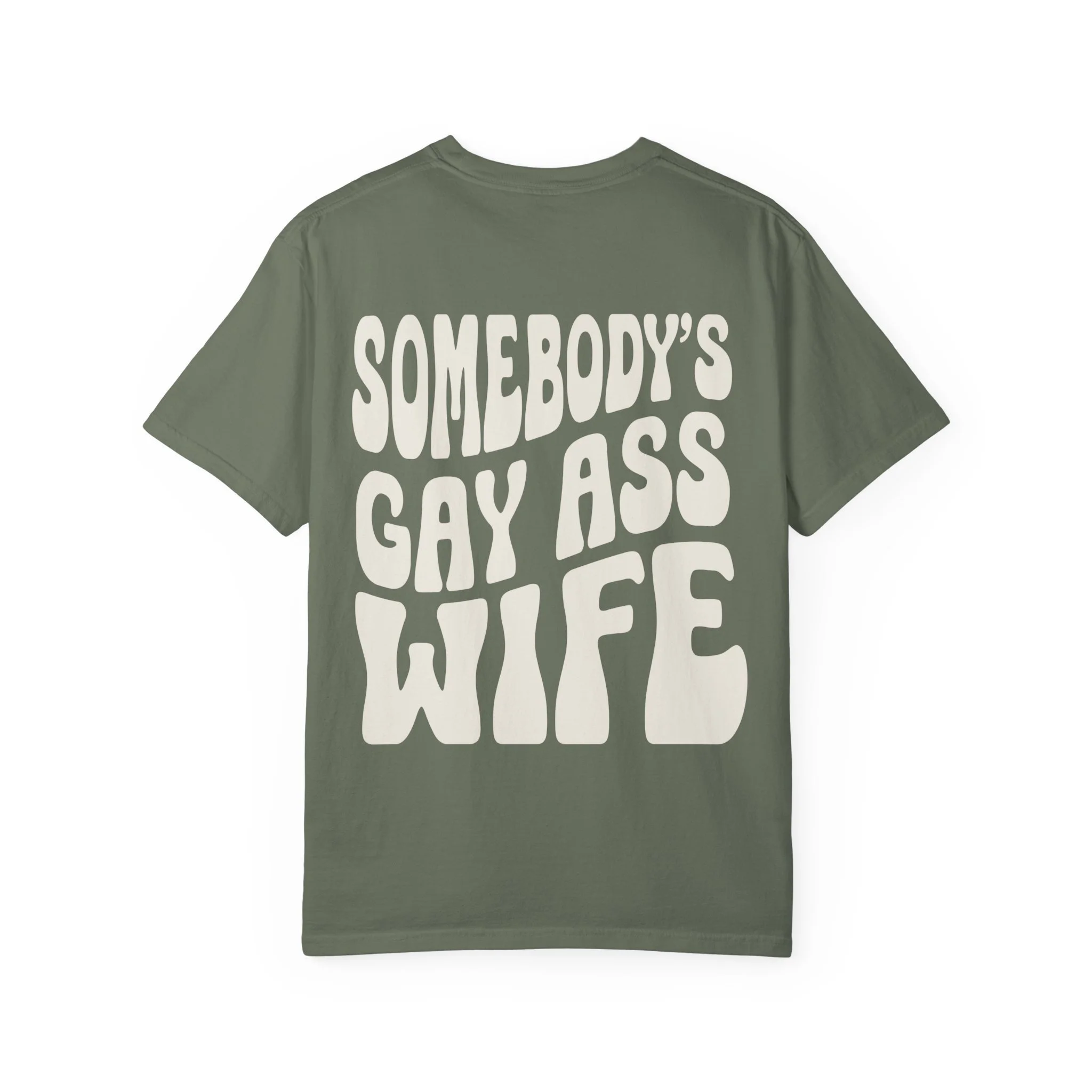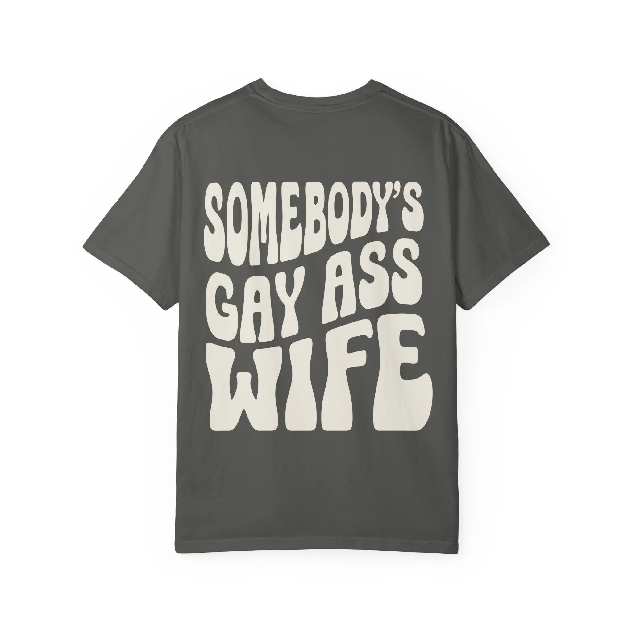 Bold back graphic: “Somebody’s Gay Ass Wife”